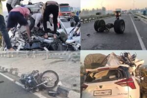 ബെംഗളൂരു : ബെംഗളൂരു റൂറൽ ജില്ലയിലെ ഹൊസ്കോട്ടെ-ദാബാസ്പേട്ട് ദേശീയപാതയിലുണ്ടായ ദാരുണമായ വാഹനാപകടത്തിൽ ആറ് മലയാളികൾ ഉൾപ്പെടെ ഏഴ് പേർ കൊല്ലപ്പെട്ടു. വെള്ളിയാഴ്ച പുലർച്ചെ ദേശീയപാത 648-ൽ ഹൊസ്കോട്ടെയ്ക്ക് സമീപമുള്ള സത്യവര ഗ്രാമത്തിലാണ് നാടിനെ നടുക്കിയ ഈ ദുരന്തമുണ്ടായത്. രണ്ട് കാറുകളും ഒരു ട്രക്കും ബൈക്കും ഉൾപ്പെട്ട വലിയൊരു കൂട്ടിയിടിയാണ് അപകടത്തിന് കാരണമായത്.ദേവനഹള്ളി ഭാഗത്തേക്ക് അമിതവേഗത്തിൽ പോവുകയായിരുന്ന എക്സ് യു വി 700 (XUV700) കാർ മുന്നിലുണ്ടായിരുന്ന ബൈക്കിലിടിച്ചതാണ് അപകടങ്ങളുടെ തുടക്കം. ഇടിയുടെ ആഘാതത്തിൽ നിയന്ത്രണം നഷ്ടപ്പെട്ട കാർ…