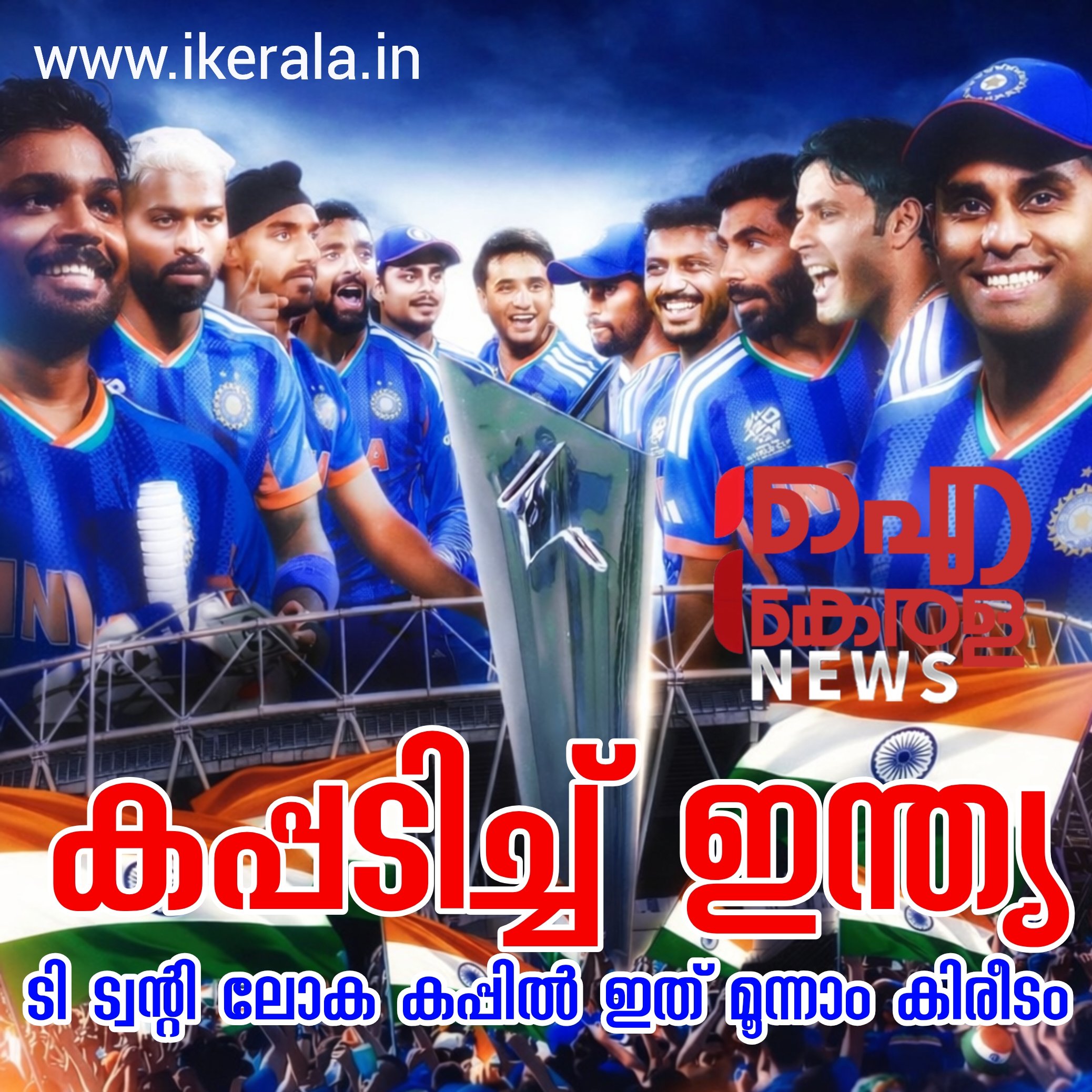 ട്വന്റി 20 ക്രിക്കറ്റ് ലോകകപ്പിന്റെ ഫൈനലിൽ ന്യൂസിലാൻഡിനെ തകർത്തെറിഞ്ഞ് ഇന്ത്യക്ക് വിശ്വകിരീടം. ഫൈനലിൽ ഇന്ത്യ ഉയർത്തിയ 256 റൺസെന്ന കൂറ്റൻ വിജയലക്ഷ്യം പിന്തുടർന്ന കിവികൾക്ക് 159 റൺസെടുക്കാനേ സാധിച്ചുള്ളൂ. ഈ വിജയത്തോടെ ട്വന്റി 20 ലോകകപ്പ് ചരിത്രത്തിൽ മൂന്ന് തവണ കിരീടം നേടുന്ന ആദ്യ ടീമെന്ന റെക്കോർഡും ഇന്ത്യ സ്വന്തമാക്കി. 2007-ൽ എം.എസ്. ധോണിയുടെയും 2024-ൽ രോഹിത് ശർമ്മയുടെയും നേതൃത്വത്തിൽ കിരീടം ചൂടിയ ഇന്ത്യയുടെ കുതിപ്പിൽ മറ്റൊരു പൊൻതൂവൽ കൂടിയാവുകയാണ് ഈ വിജയം.​ബാറ്റിംഗിലും ബൗളിംഗിലും ഒരുപോലെ ആധിപത്യം പുലർത്തിയ മത്സരത്തിൽ ന്യൂസിലാൻഡിന് ഒരിക്കൽ പോലും വിജയപ്രതീക്ഷ നൽകാൻ ഇന്ത്യൻ ബൗളർമാർ അനുവദിച്ചില്ല. കൂറ്റൻ ലക്ഷ്യത്തിലേക്ക് ബാറ്റ് വീശിയ കിവീസിന് തുടക്കത്തിലേ പിഴച്ചു. ഓപ്പണർ ഫിൻ അലൻ (9), രചിൻ രവീന്ദ്ര (1), ഗ്ലെൻ ഫിലിപ്‌സ് (5), മാർക് ചാപ്മാൻ (3) എന്നിവർ പാടെ പരാജയപ്പെട്ടതോടെ കിവികൾ പ്രതിരോധത്തിലായി. ഒരു വശത്ത് വിക്കറ്റുകൾ പൊഴിയുമ്പോഴും 26 പന്തിൽ 52 റൺസെടുത്ത് പോരാടിയ ടിം സൈഫേർട്ട് മാത്രമാണ് ഇന്ത്യൻ ബൗളർമാരെ അൽപ്പമെങ്കിലും വിറപ്പിച്ചത്.​സൈഫേർട്ട് പുറത്തായതോടെ ന്യൂസിലാൻഡിന്റെ പതനം പൂർത്തിയായി. പിന്നീട് വന്ന ഡാരിൽ മിച്ചൽ (17), മിച്ചൽ സാന്റ്‌നർ എന്നിവർ അൽപ്പനേരം പിടിച്ചുനിന്നെങ്കിലും അക്സർ പട്ടേലിന്റെ സ്പിൻ കരുത്തിന് മുന്നിൽ കീഴടങ്ങിയതോടെ കിവീസിന്റെ പോരാട്ടം 159 റൺസിൽ അവസാനിച്ചു. കൃത്യമായ ഇടവേളകളിൽ വിക്കറ്റുകൾ വീഴ്ത്തി സമ്മർദ്ദം നിലനിർത്തിയ ഇന്ത്യൻ ബൗളർമാരാണ് കളി ഇന്ത്യയുടെ വരുതിയിലാക്കിയത്. ഈ ചരിത്ര വിജയത്തോടെ രാജ്യാന്തര ക്രിക്കറ്റിലെ തന്റെ ആധിപത്യം ഇന്ത്യ ഒരിക്കൽ കൂടി അരക്കിട്ടുറപ്പിച്ചു.